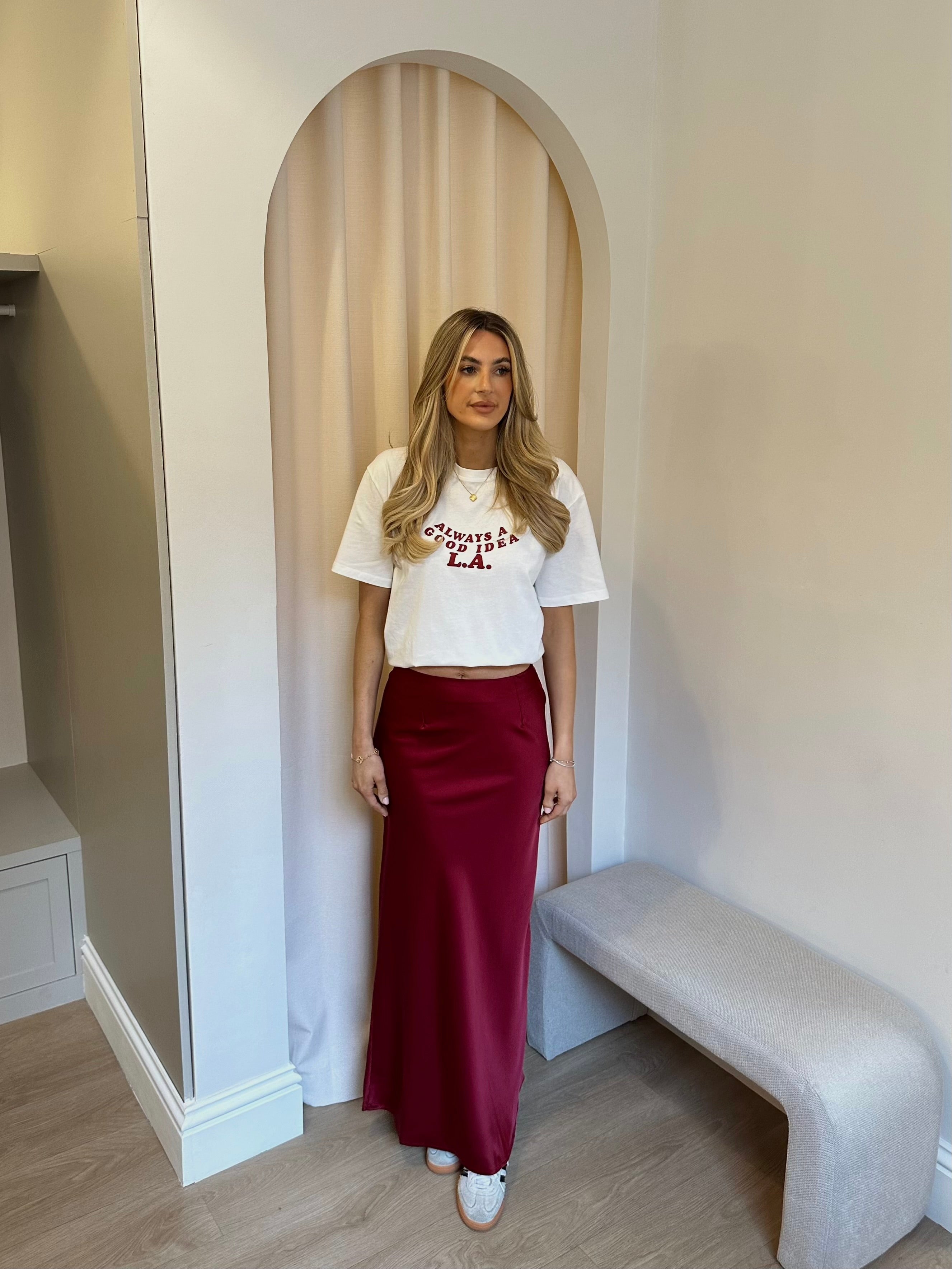 Burgundy Midaxi Satin Skirt
