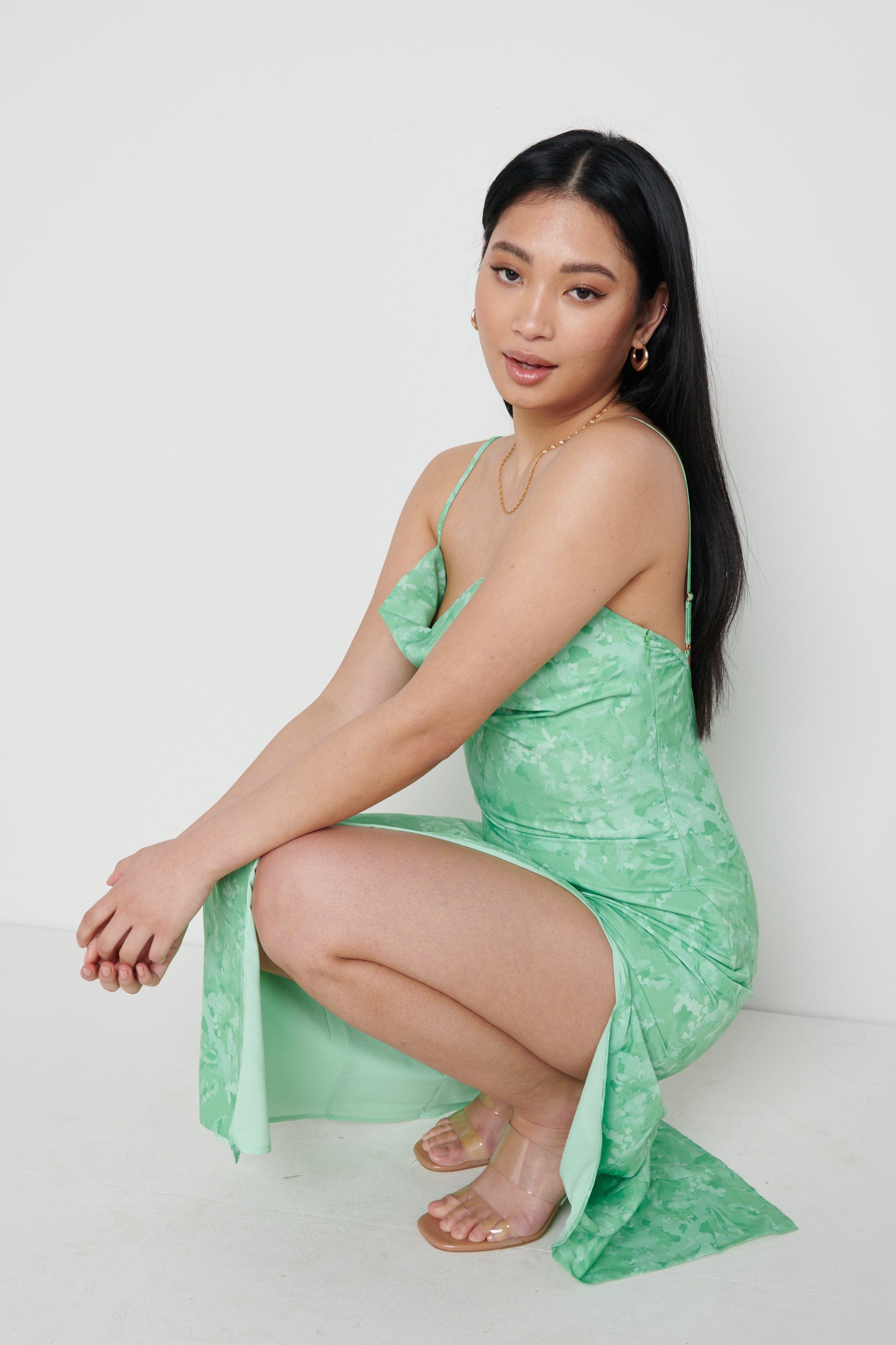 Keisha Midaxi Green Floral Dress
