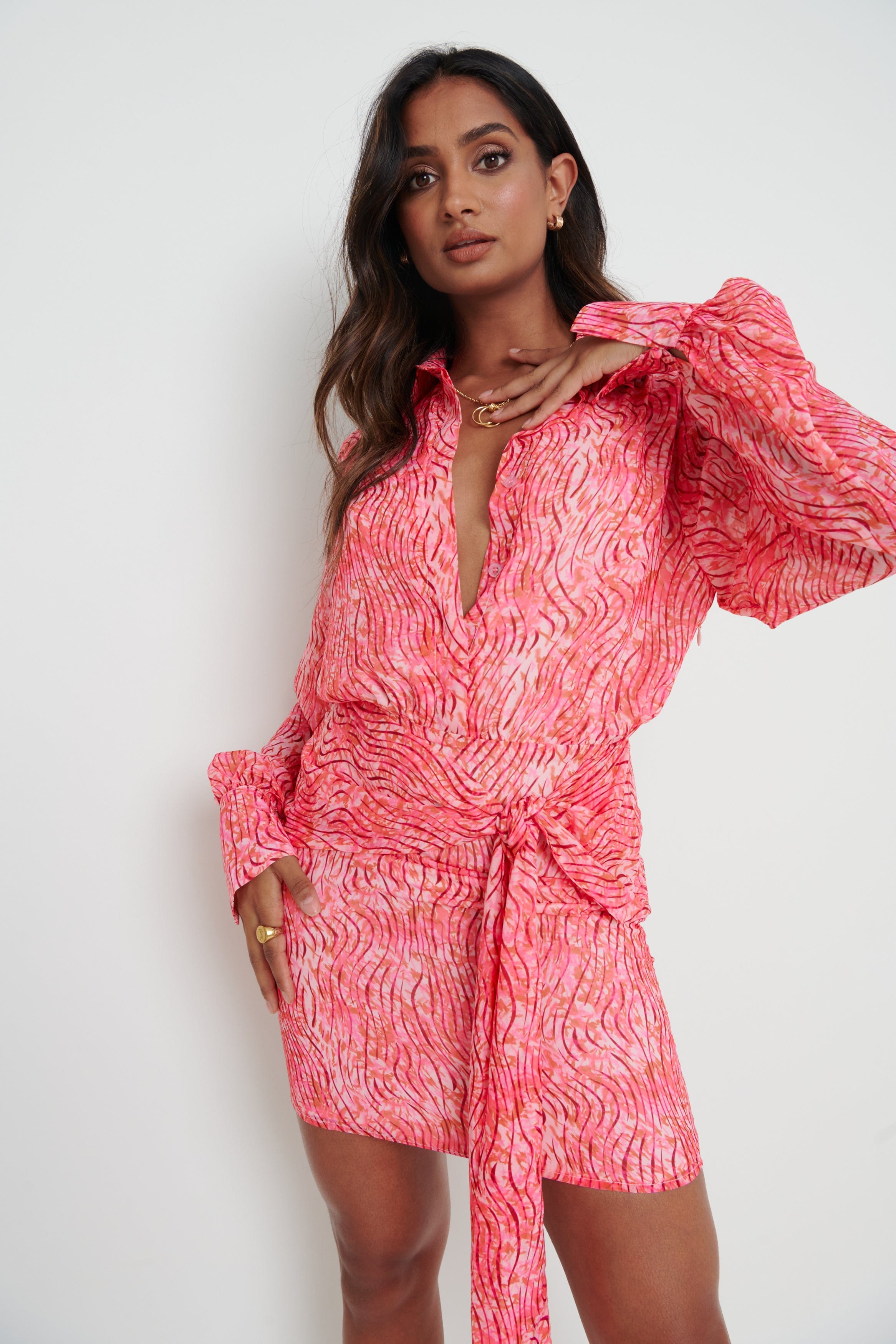 - Functional tie at front