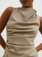 - Soft cowl neckline for a draped, elegant look