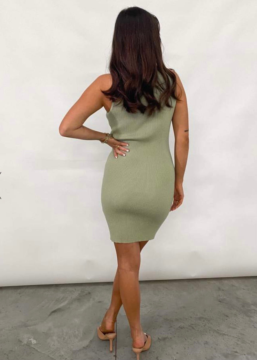 Billie Ribbed Racer Mini Dress Olive